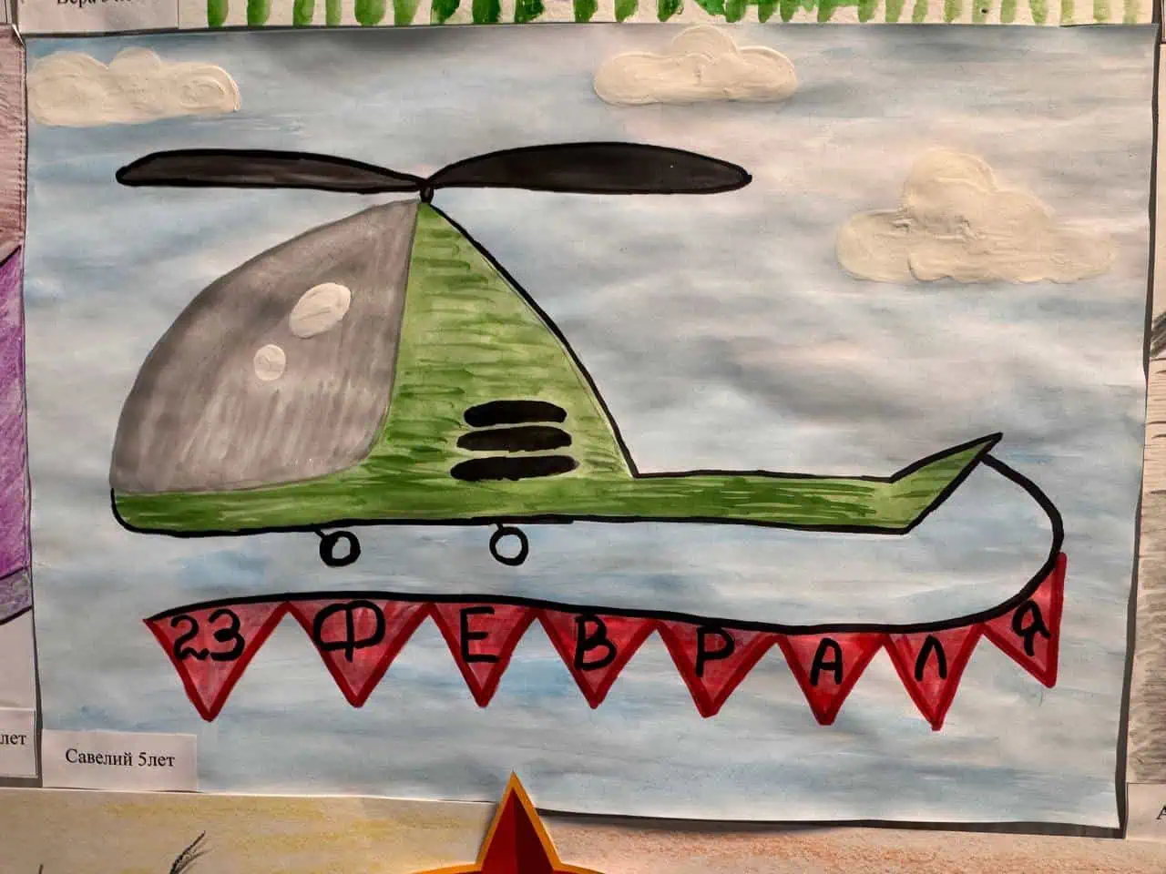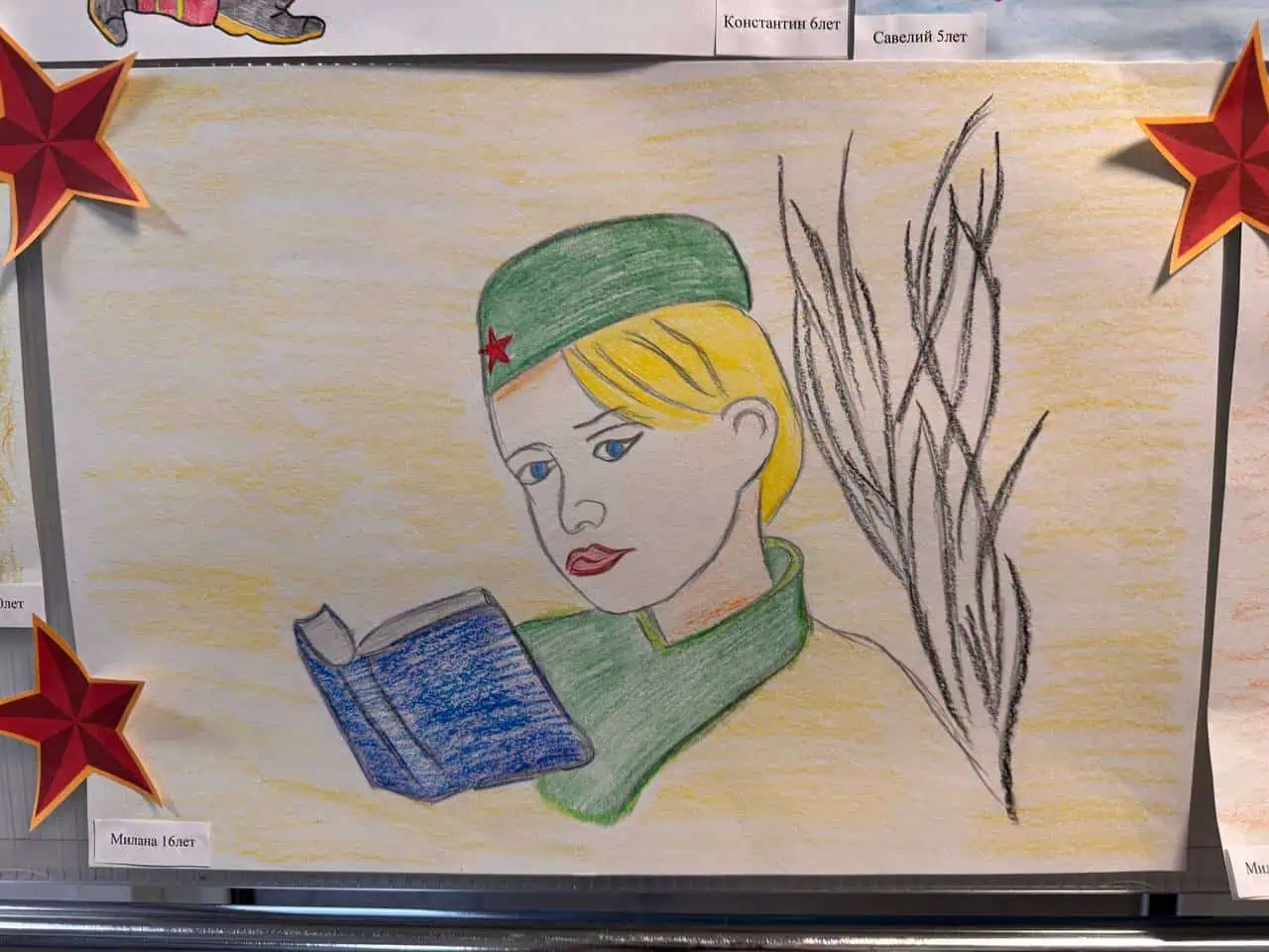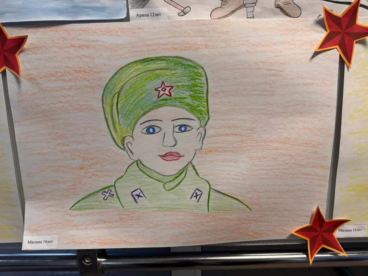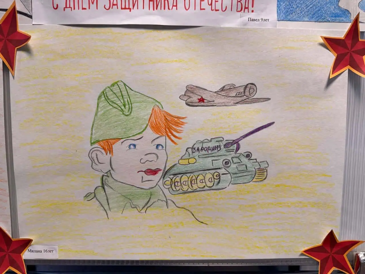 Это работы участников конкурса на тему «Портрет мужества». Наши юные художники — дети наших сотрудников — постарались через рисунки передать свое понимание силы духа, героизма и отваги. Получилось очень трогательно и искренне.